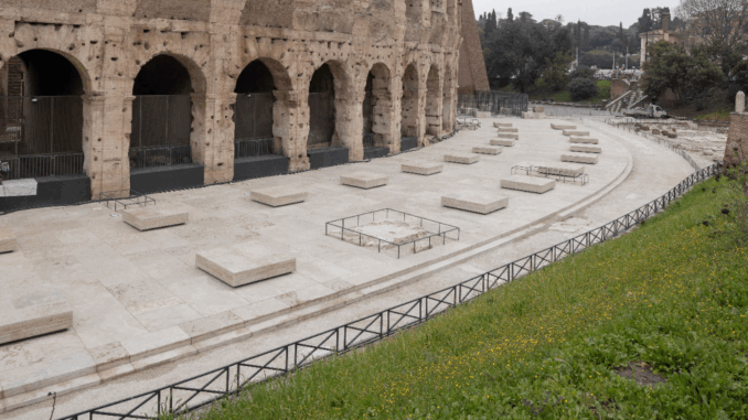 “Da oggi visitatori e romani avranno una nuova visione del Colosseo grazie alla sistemazione dell’area archeologica degli ambulacri meridionali, uno spazio rinnovato nel suo aspetto che saprà accogliere il pubblico narrando il monumento in un settore particolare: già all’interno dell’anfiteatro o meglio del suo profilo originale, ma all’esterno. Un’area che nei secoli ha conosciuto numerose trasformazioni e riusi e che oggi finalmente si riappropria della sua essenza, ricordandone le vestigia anche attraverso la sapiente riproposizione dei suoi elementi fondamentali: pavimentazione in travertino, crepidine e pilastri”, dichiara Simone Quilici, Direttore del Parco archeologico del Colosseo.